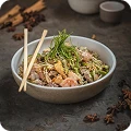 €44.00Flaky black cod marinated in sweet miso, served with jasmine rice and wilted greens.